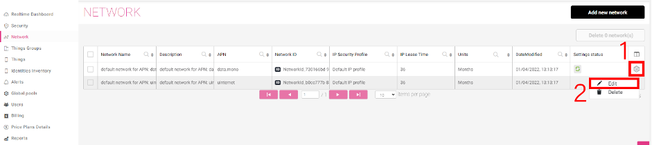 1\. Log in to the Monogoto portal and go to *Network.*