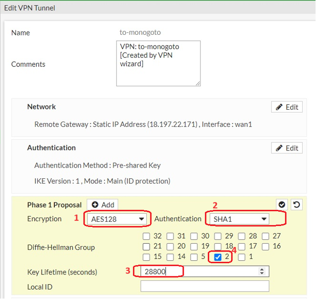 18\. Press OK at the bottom to save all changes. The IPsec Tunnel should be UP in a few seconds