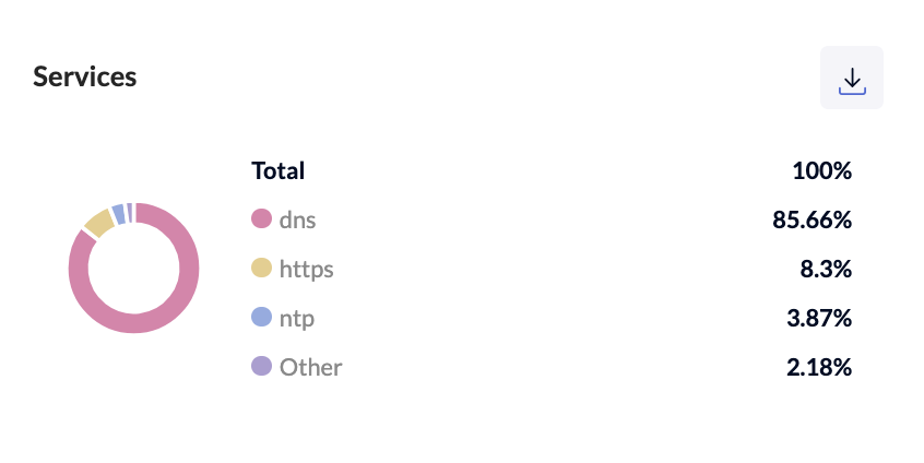The **Services** chart shows the top IP services which are in use and its percentage of usages.