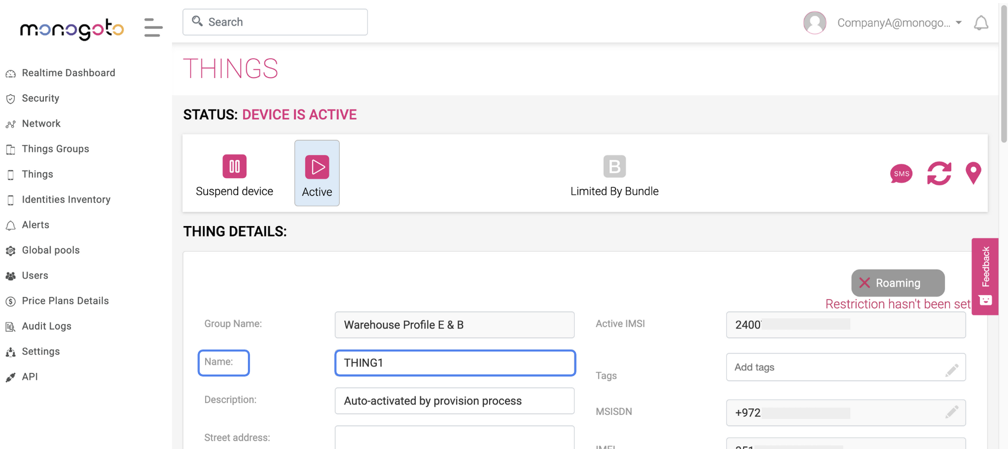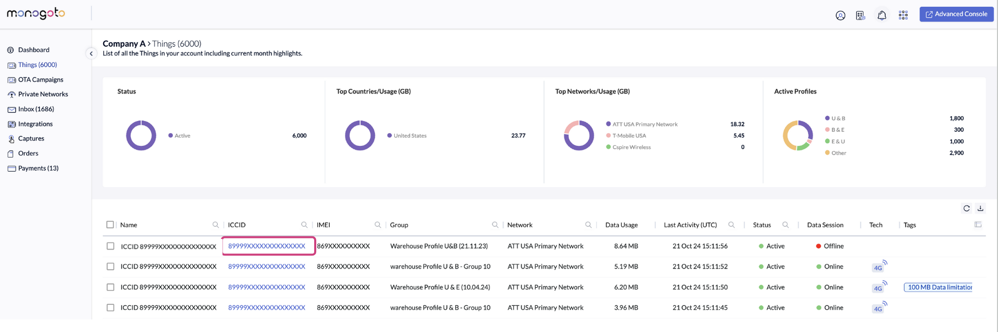 Locate the item in the Things table that you wish to rename, and click on its ICCID.