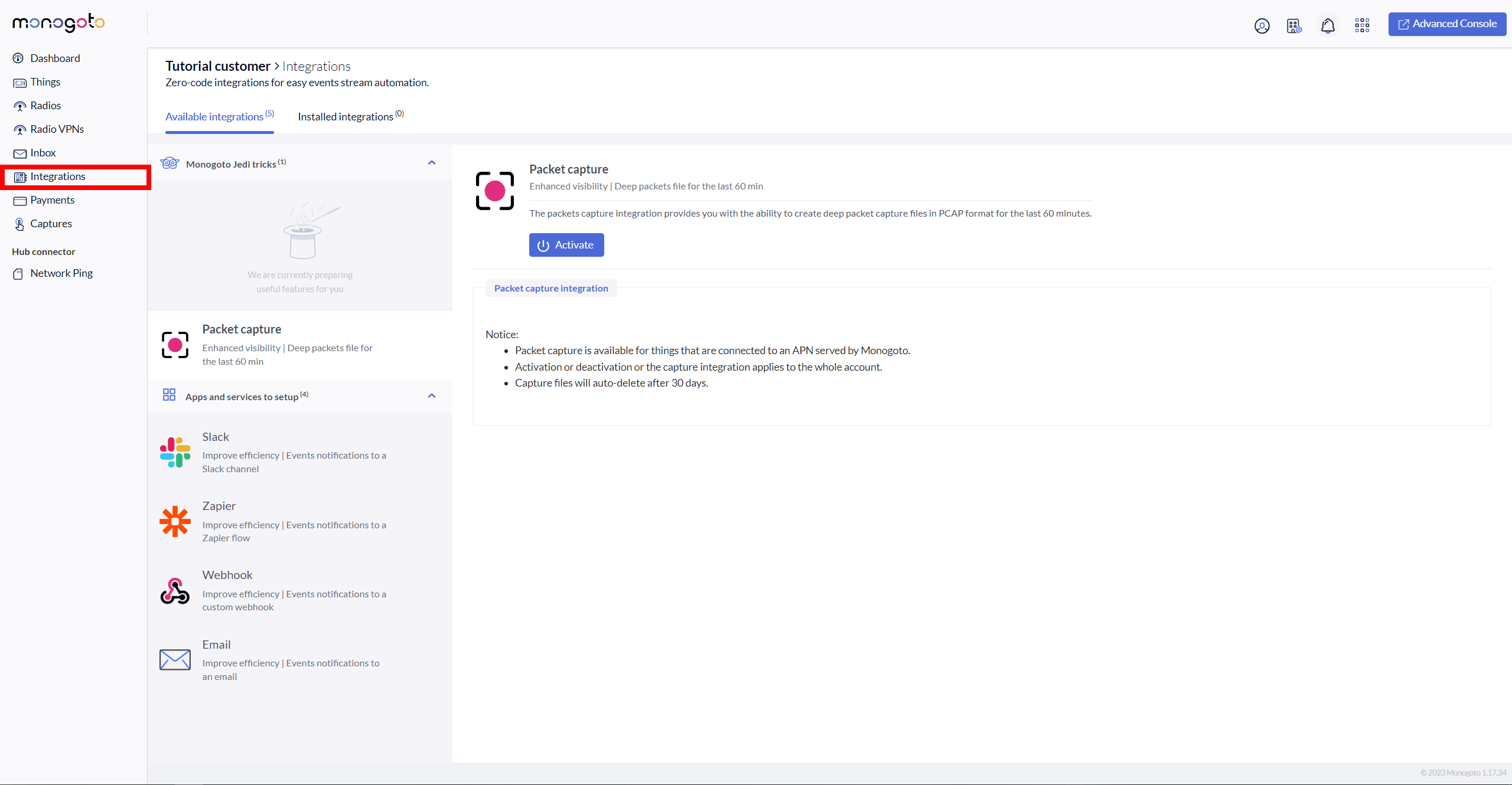 2\. Go to **Integrations** section.