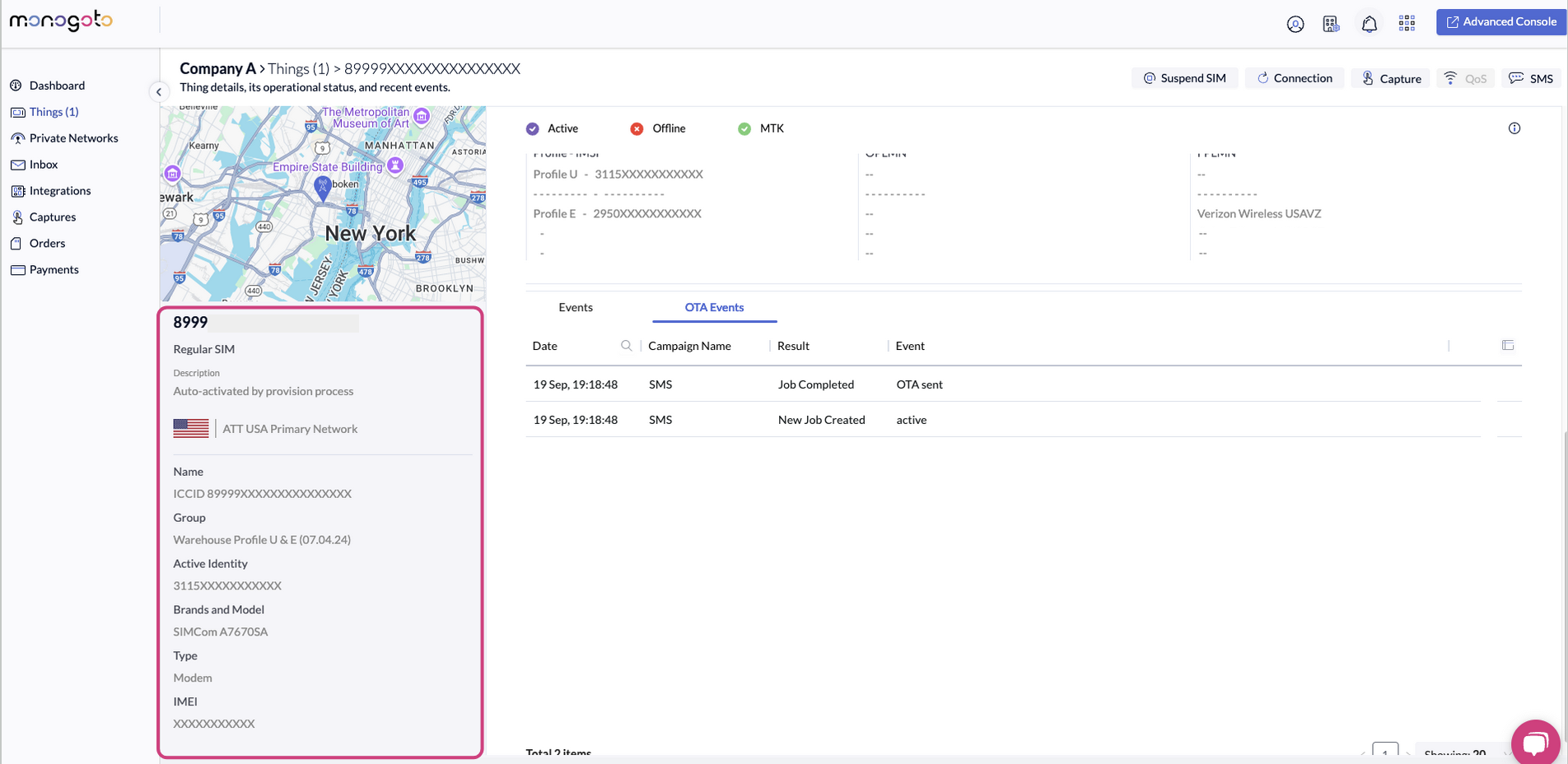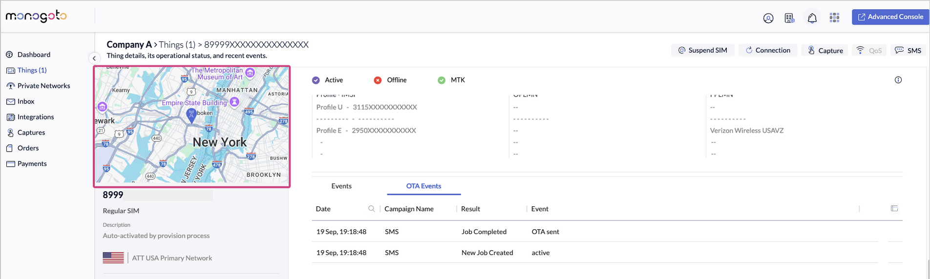 **Suspend/Activate SIM:** Activate or suspend the Thing. When suspended, the SIM cannot connect to the network.