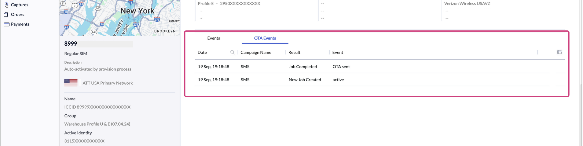 **Event:** A brief description of the event or action taken, such as active or OTA sent.