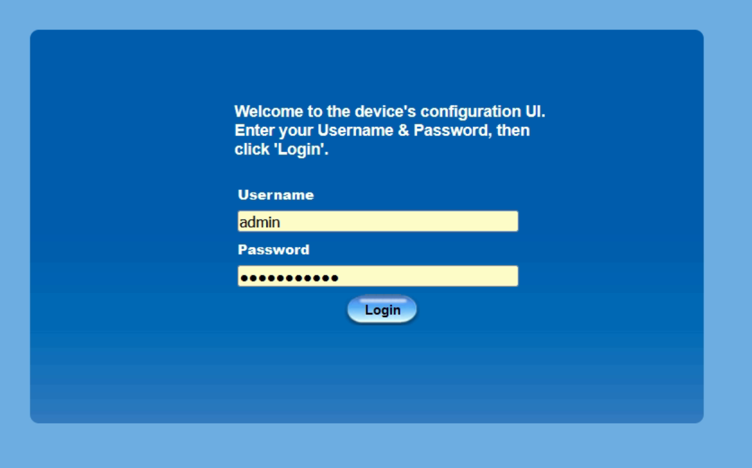 Enter the user name and password and click Login. The default credentials are:\