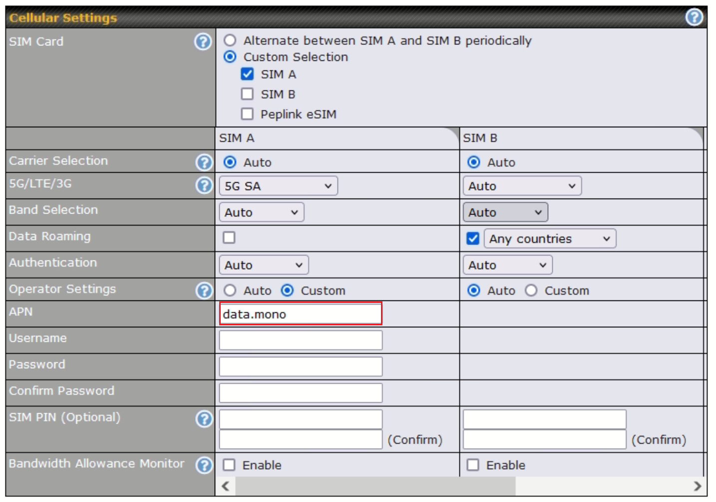 Configure the APN to: <mark style="color:red;">**`data.mono`**</mark>